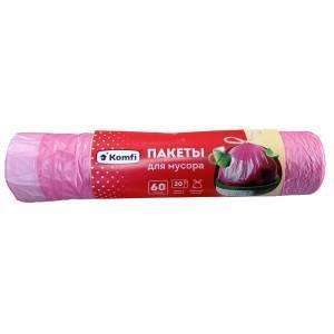 5857Пакеты для мусора с завязками 60л, 20 шт., 10 микрон ПНД розовые, в рулоне KOMFI (MUSPI 01) (уп.1/20) |