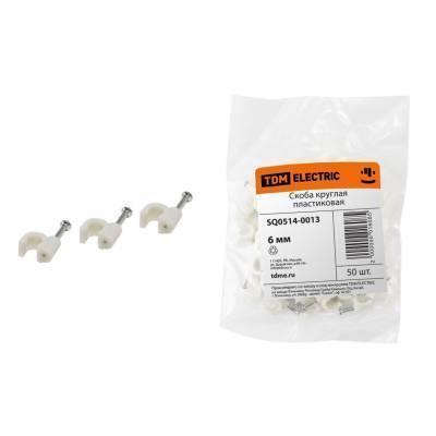 Скоба 6мм круглая пластиковая (белая) (50шт) TDM (SQ0514-0013)