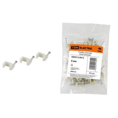 Скоба 9мм плоская пластиковая (белая) (50шт) TDM (SQ0513-0013)