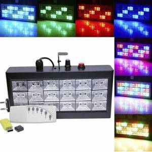 7966Светильник-стробоскоп цветной LED ROOM STROBE 18 LED С MP3 ПЛЕЕРОМ |