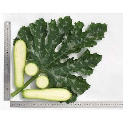 Раннеспелый партенокарпический гибрид. От всходов до первого сбора — около 40 дней. Растение кустового типа, компактное. Междоузлия очень короткие. Плоды цилиндрической формы, однотипные по форме и размеру. Окраска плодов бледно-зелёного цвета. В технической спелости длина кабачков около 20 см, масса 0,5-0,7 кг. Мякоть белая, очень нежной консистенции, отличного вкуса. Плоды могут храниться до 3 месяцев. Гибрид устойчив к стрессовым условиям, хорошо переносит как повышенные, так и пониженные температуры. Жизнестойкое растение образует плоды до самых заморозков. Рекомендуется для выращивания как в защищенном грунте, так и в открытом. Семена данного гибрида кабачка обработаны химическим протравителем. Посев должен производиться исключительно сухими семенами без предварительного замачивания в воде или стимуляторах роста. Плотность посадки — 2-3 растения/м². Урожайность — до 15,0 кг/м².