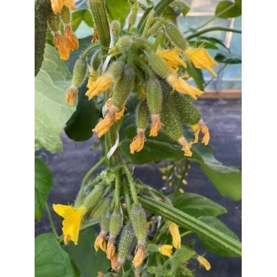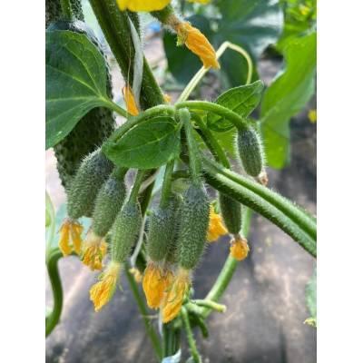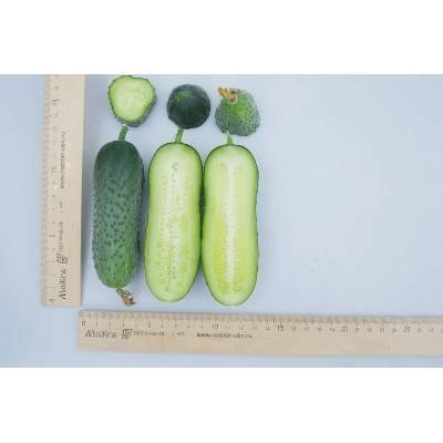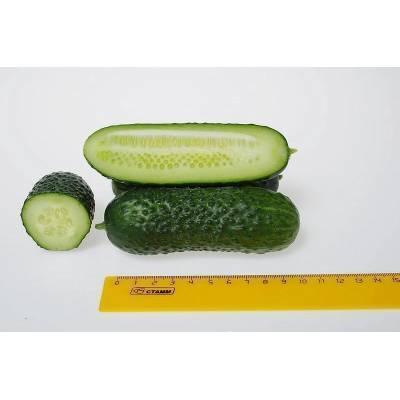 Раннеспелый партенокарпический гибрид с пучковой завязью и женским типом цветения. В плодоношение вступает на 45-й день от полных всходов. Растение плетистое, средневетвистое. Зеленцы удлиненно-цилиндрической формы с округлой вершиной, слаборебристые, с небольшими бугорками и короткими светлыми полосками. Опушение плодов белого цвета, масса 80-100 г. В пазухах закладывается от 5 - 10 и более огурчиков. Оптимальная длина для сбора зеленцов 11-12 см. Зеленцы долго не перерастают, сохраняя свои вкусовые и товарные качества на высоком уровне. Мякоть плодов сочная, плотная, хрустящая, сладкая, очень ароматная, без пустот и без горечи. Плоды великолепны в свежем виде и в консервации. Гибрид устойчив к оливковой пятнистости, огуречной мозаики, настоящей и ложной мучнистой росе, вирусу желтой мозаике, а также к перепадам температур. Плотность посадки 3 растения/м². Урожайность более 14,0 кг/м².