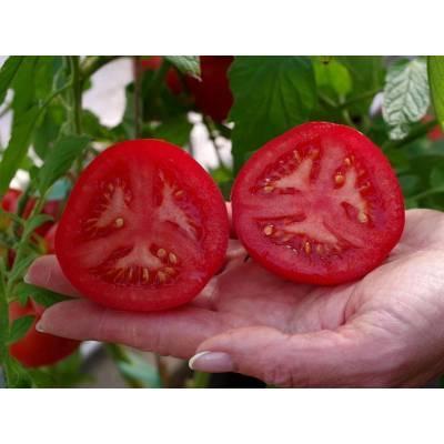 Среднеспелый полудетерминантный гибрид томата для открытого и защищенного грунта. С момента всходов до созревания первых плодов проходит 110-115 дней. Растения среднеоблиственные, высотой 1,0-1,5 м. Первое соцветие закладывается над 7-8 листом, последующие – через 1-2 листа. Кисти простые, содержащие по 5-6 выравненных плодов. Плоды округлые, ярко-красного цвета, плотные, лежкие, транспортабельные, массой 130-150 г. Вкусовые качества плодов великолепные. Гибрид отличается растянутым периодом плодоношения. Растения устойчивы к альтернариозу (Asc), фузариозу (Fol), черной бактериальной пятнистости (Pst), кладоспориозу (Ff), вирусу томатной мозаики (ToMV). Рекомендуемая плотность посадки – 3-4 растения/м², формировка в 1-2 стебля. Урожайность в условиях открытого грунта – до 15,0 кг/м², в защищенном грунте – около 20,0 кг/м².