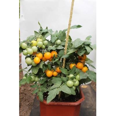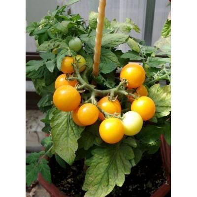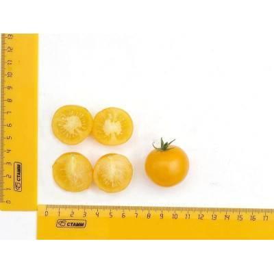 Скороспелый детерминантный сорт томата. От всходов до начала плодоношения проходит 80-85 дней. Растение супердетерминантное, компактное, высотой 30-40 см, штамбовой формы, среднеоблиственное, не требующее пасынкования. Плоды округлой формы, желтого цвета, гладкие, массой 20-30 г, сладкие и ароматные. Рекомендованы для свежего потребления. Сорт ценится за декоративность и возможность выращивания в контейнерах в домашних условиях, в том числе в зимнее время в светокультуре. Сорт стрессо- и болезнеустойчив, толерантен к недостатку света. Чтобы томат полностью раскрыл свой потенциал, рекомендуем объем кашпо 5-7 л на одно растение и плотность посадки в грунте – 5-7 растений/м2. Урожайность гибрида зависит от предоставленного ему объема грунта и качества питания, при благоприятных условиях может составлять до 1 кг с одного растения.