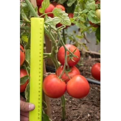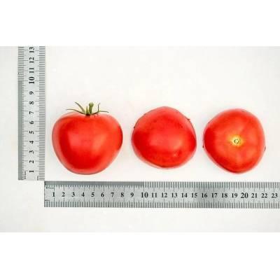 Раннеспелый детерминантный гибрид томата высотой до 100 см. От всходов до плодоношения проходит 85-90 дней. Первое соцветие закладывается над 6-7 листом, последующие — через 2 листа. В простых и полусложных кистях формируется по 4-6 округлых насыщенно-красных плода массой 110-150 г. Томаты плотные, мясистые, с тонкой, но прочной кожицей, классического вкуса с легкой кислинкой, ароматные, хороши для употребления в свежем виде и всех видов консервирования. Гибрид стрессо- и болезнеустойчив. Рекомендован для получения раннего урожая. Плотность посадки — 4-5 растений/м2. Рекомендуем формировать растения в 3-4 стебля. Урожайность — до 15 кг/м2.