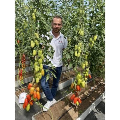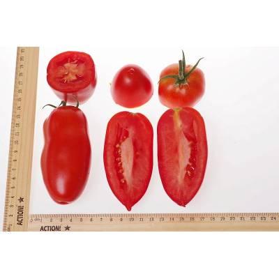 Раннеспелый индетерминантный гибрид томата. От всходов до плодоношения проходит 100 дней. Растение среднерослое, с укороченными междоузлиями. Первое соцветие закладывается над 7-9 листом, последующие – через каждые 2 листа. В простых кистях формируется по 7-9 плодов цилиндрической формы с маленьким аккуратным носиком. Томаты ярко-красные, глянцевые, плотные, массой 120-130 г. Вкусовые качества, товарный вид и транспортабельность плодов отличные. Томаты рекомендованы для свежего потребления и консервирования. Гибрид стрессо- и болезнеустойчивый. Плотность посадки – 3-4 растения/м2. Рекомендуем формировать растения в 1-2 стебля. Урожайность – свыше 20,0 кг/м2.