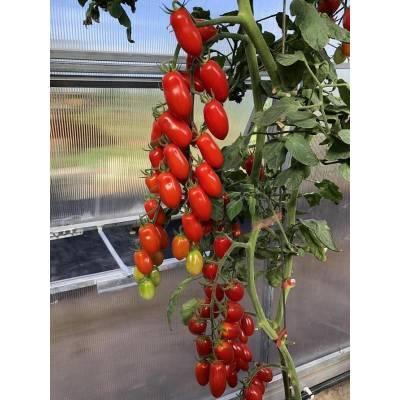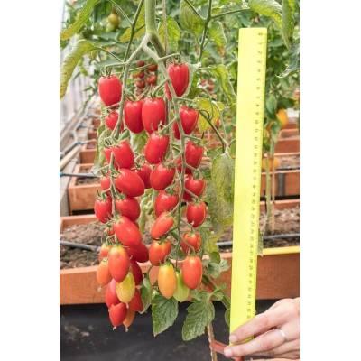 Ультраранний индетерминантный гибрид. От всходов до начала созревания первых плодов — 85-90 дней. Растение компактное, открытое, с короткими междоузлиями. Первое соцветие закладывается над 7-8 листом. В полусложной кисти формируется 20-30 плодов сливовидной формы. Томаты ярко-красного цвета, массой 20-25 г, плотные, транспортабельные, лежкие. Плоды очень вкусные, сладкие, практически не содержат кислоту, универсального назначения. Гибрид устойчив к вирусам томатной мозаики (ToMV), желтого скручивания листьев (TYLCV), фузариозу (Fol), вертициллёзу (Va, Vd), кладоспориозу (Ff), галловым нематодам (Ma, Mi); характеризуется высокой стрессоустойчивостью и способностью завязывать плоды даже в неблагоприятных условиях. Плотность посадки — 3-4 растения/м2. Рекомендуется формировать в 1-2 стебля. Урожайность — 16,0-17,0 кг/м2.