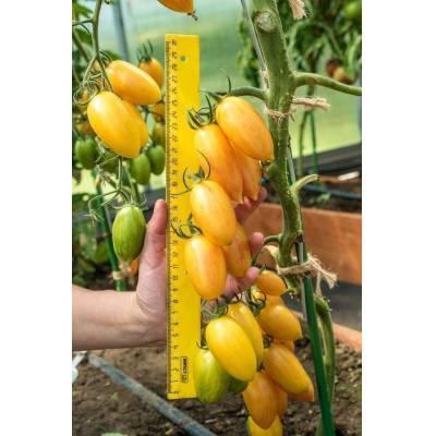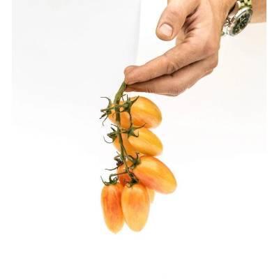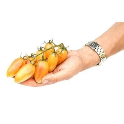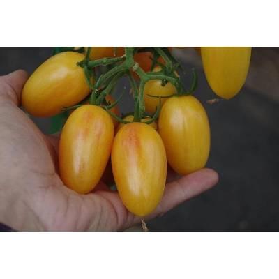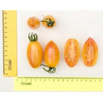 Раннеспелый индетерминантный гибрид томата. От всходов до первого сбора плодов проходит 90-95 дней. Растение сильнорослое. Первое соцветие закладывается над 6-7 листом, последующие через 1-2 листа. В простых и полусложных кистях формируется по 8-12 томатов удлиненно-яйцевидной формы с заостренной вершиной. Плоды насыщенно-желтого цвета с оранжевыми штрихами и полосками, массой по 35-45 г, вкусовые качества отличные. Томаты хороши как в свежем, так и в консервированном виде, а также подходят для вяления. Гибрид устойчив к основным болезням томата. Плотность посадки 3-4 растения/м2. Рекомендуем формировать растения в 1-2 стебля. Урожайность – до 17 кг/м2.