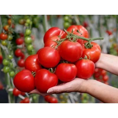 Гибрид ультраранний, детерминантный. От всходов до сбора первых плодов — 80-85 дней. Кисть простая, с 7-8 плодами. Первое соцветие закладывается над 5-6 листом, последующие — через 2 листа. Плоды округлые и плоскоокруглые, плотные, ярко-красного цвета, без зелёного пятна у плодоножки, массой 120-140 г, с отличными вкусовыми качествами. Характеризуется дружным плодоношением, быстрой отдачей урожая и отличной завязываемостью плодов в различных климатических условиях. Рекомендуется для раннего производства томатов в открытом грунте. Гибрид устойчив к растрескиванию и вершинной гнили плодов, толерантен к вирусу томатной мозаики (ToMV), альтернариозу (Asc) и фитофторозу (Pi). Плотность посадки — 5 растений/м² при формировании в 2-3 стебля. Урожайность в открытом грунте — более 15,0 кг/м², в защищенном — до 18,0 кг/м².