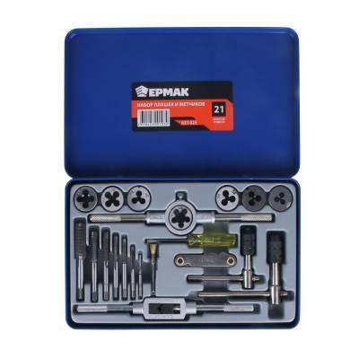 Набор метчиков и плашек ЕРМАК 21 пред. (637-025)