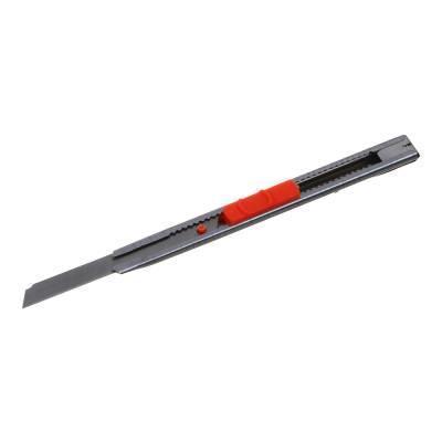 Универсальный строительный нож ЕРМАК - профессиональный инструмент с металлическим корпусом, созданный для точных и надежных работ. Благодаря продуманной конструкции и качественным материалам, этот нож станет незаменимым помощником как для домашнего мастера, так и для профессионала. Металлический корпус инструмента обеспечивает его долговечность и устойчивость к механическим повреждениям. Система автоматического запирания лезвия (Auto lock) гарантирует безопасную работу и надежную фиксацию лезвия в рабочем положении. Нож оснащен сегментированным лезвием шириной 9 мм, что позволяет выполнять точные резы различных материалов. Особая конструкция лезвия предусматривает возможность отламывания затупившегося кончика, благодаря чему инструмент можно использовать многократно.