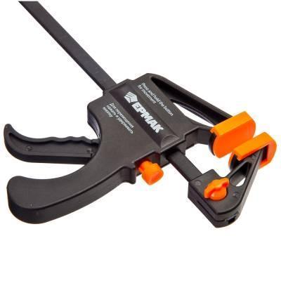 Универсальная F-образная струбцина ЕРМАК применяется в слесарных работах. Инструмент используется для зажатия и фиксации различных деталей и заготовок, а также для склеивания под нажимом. Фиксация и степень нажима регулируются кнопкой. Корпус выполнен из прочного пластика.